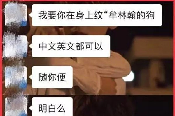 而牟林翰后来有一次聊天时,让包丽在身上纹“牟林翰的狗”,中英文都可以,纹的过程让人给录下来,自己录也行……。