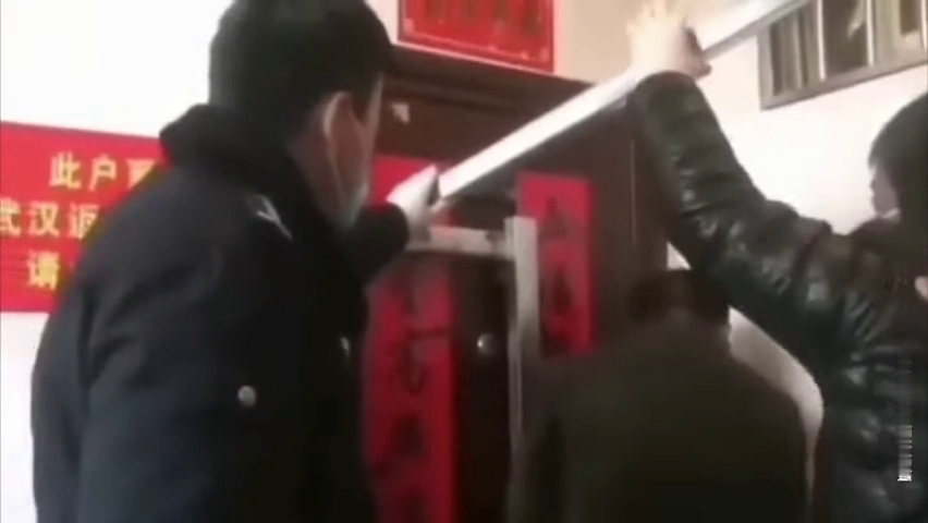 武汉归乡人员家中大门被三角铁封死