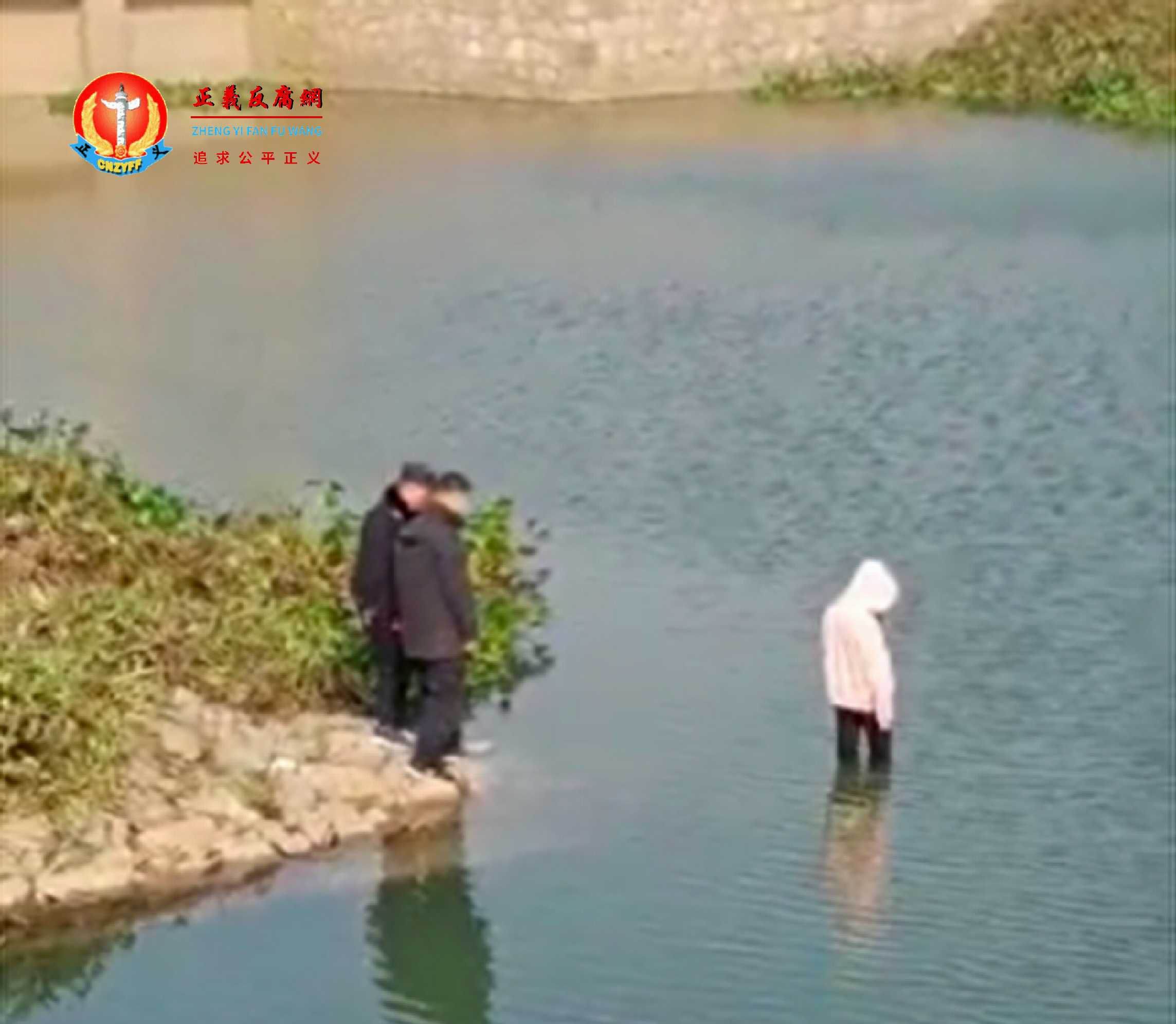 ▲12月4日,安徽安庆17岁女孩跳河,众警2米处“围观”看着她淹死。(图片来源:视频截图)
