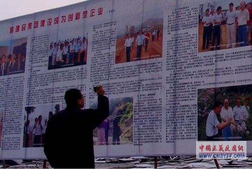 图:各级政府官员参观的照片成了建民集团的看家门神