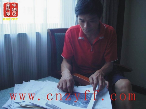 图为村民代表郑应明向笔者反映村、镇府及三丰建设公司非法倒卖征用土地 摄影/求公正