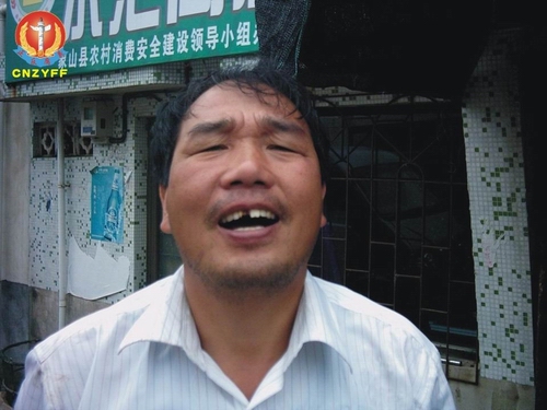图为中在10·28事件现场被殴打其中一位村民胡孟东打掉门牙