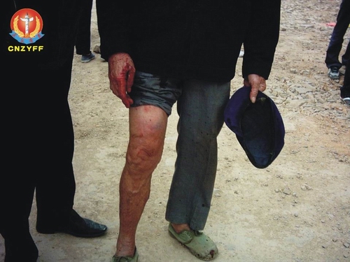 图为中在10·28事件现场被殴打其中一位村民血淋淋