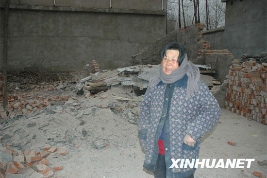 拆迁户管秀珍哭泣着向记者介绍她被强拆的新房。