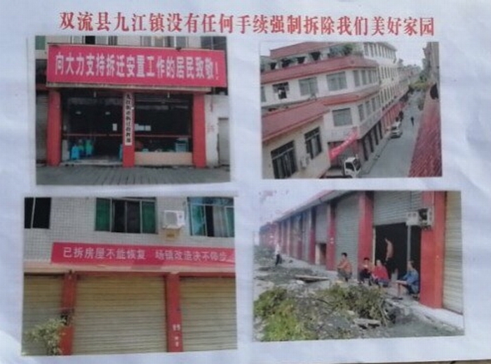 邹家场社区业主李女士向记者介绍,成都市双流区九江街道邹家场社区原本是集体土地,有一部分土地是被镇政府卖掉的,所以后来就有一些外来人口也在这里盖商铺,2013年政府要拆迁,但未持任何合法征地批文,土地规划作何用处,业主们都不清楚。