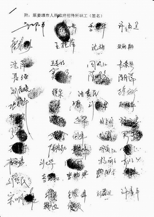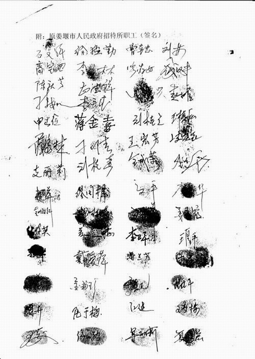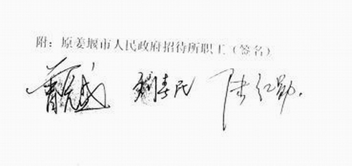 姜堰宾馆职工签名单